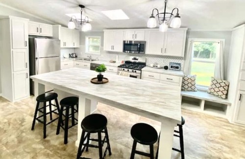 The Home: Updated three Bedrooms (1 Queen, 1 Full, 2 twin), two full bathrooms, kitchen with large island, separate living room and family room. Also includes queen size sofa-sleeper, flip-out love seat, and optional queen size air mattress.