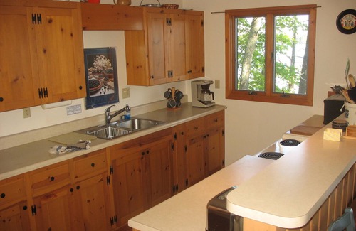 Our cabin is a lovely 1400 sq foot 2 bedroom cabin perched on the edge of a 50 foot slope down to the lake. From the deck there is a stunning and panoramic view of the lake through pines on the slope with bald eagles nesting in the treetops right in front of you as you sit on the deck drinking your morning coffee. The view is to the north so the sun rises over the lake to your right and sets to your left, often with brilliant colors. The lot is forested so there is lots of shade on the hotter days. There is a boat lift and 40 foot private dock with a staircase down to the lake. There is a canoe you can use if you bring it back up where we store it on the west end of the garage/there are paddles in the garage just inside the man door on the lake side of the garage. The lake bottom is very gradual so an adult can wade out about 200 feet before getting in over his head. The bank is rip-rapped but after the first 10 feet or so the bottom is mostly sandy and great for swimming. Lake temperatures are about 70 degrees or more by the end of June and the lake is so clear that you can see down 10 feet or more so it's a wonderful place to swim and snorkel. It has a full kitchen with refrigerator, range, microwave, coffeemaker and toaster. There is a septic system and no disposal so there is a screen in the kitchen sink and you have to be careful to keep any debris from going down the drain. There is no dishwasher. The great room has a wonderful view of the lake through sliding patio doors and bay window and is about 25 by 30 including the sitting areas, dining area and galley kitchen. There is a large sectional with a TV, DVD player and cable TV. There is internet access with a wireless router. There is also a trundle bed in the great room. The lower bed can be brought out so 2 can sleep there or it can be left underneath and 1 can sleep there. There are 2 bedrooms. The master has a queen size bed. The other bedroom has 2 twins. There is a full bath with tub/shower, lavatory and toilet. A second bathroom has a stand up shower and toilet, and then a larger room with a laundry tub, medicine chest, mirror and coat racks. Outside there is a charcoal grill, portable fire pit, wood supply, deck table and chairs and front lawn for bocci ball, playing catch or sitting in the adirondack chairs under the trees and reading. It's about 2 miles to the Indian casino and about 7 miles to Hayward which is a resort town of over 2000 people with restaurants, large grocery stores, gift shops, hardware stores and places to rent all kinds of watercraft. There is a marina on the lake that sells gas, rents pontoon boats, speed boats and other kinds of watercraft. It is a 20-30 minute drive to rent canoes and tubes to float the Namakagon River which holds smallmouth bass, muskies and northerns. The upper stretch above Hayward holds considerable numbers of brown trout. Hayward Country Club is a wonderful golf course that is open to the public and is right in town. It is an old-style golf course with lots of trees and always in immaculate shape. It's about $55 with cart, $44 for seniors 62 and over. A Pete Dye designed golf course called Big Fish is 2 miles from the cabin, right across the road from the casino. It's a more difficult course with an open links-style front nine and a hilly back nine that winds through the forest. There are a number of other nice courses in the area within about 30 minutes. My favorite is Spooner GC in Spooner-really scenic, rolling hills and always in wonderful shape. I may accept dogs after we've discussed it on the phone and I've agreed to have you bring them..