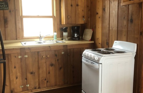 An authentic Fisherman's Cottage on the edge of Round Lake. You can cast a line off the dock or push out on your boat. Just outside the bay, Round Lake offers world class recreation for the avid water sport enthusiast. The yard boasts expansive views of the bay. The cottage has it's own driveway and garage for parking. A large deck offers views to the south and west, as well as a fire pit area down below. The dock offers fishing, a boat tie up area, use of a boat lift, and a comfortable bench to enjoy the lake. The cottage sleeps six and has all the kitchen amenities to enjoy lake life, including a refrigerator, stove, microwave, coffee pot and a charcoal grill station. This cabin is the perfect get-a-way for fishing right outside your door and the water sport enthusiasts on the main lake.
