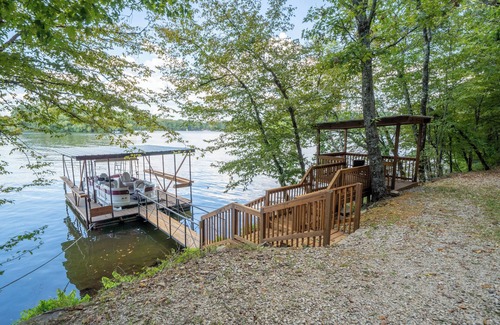 The most tranquil setting you will ever experience in Hot Springs, Arkansas! No neighbors. No noise. Incredible views from back deck of Lake Hamilton and our 20 ac private forest. It's like you are in a tree house! The boat dock and one fire pit is down at the lake. 4 kayaks and life jackets are included. There are two master suites and 2 other private bedrooms, plus one loft that sleeps 2. 8 person hot tube. 4.5 bathrooms. Two tables on the patio, 6 lounge chairs on the deck area, covered and uncovered. There is a secret wine cellar underground! 3 separate seating areas . 3 bar top areas. 4 TV's. A propane gas grill. A new Blackstone griddle. A propane fire pit. A charcoal grill. Boat dock for one boat.
