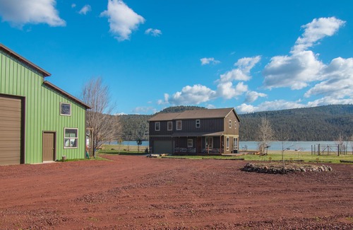 The Lakehouse is on the Ochoco Reservoir 5 miles East of Prineville, At this serene location, you can birdwatch while local eagles, ospreys, and pelicans raise their young. The huge covered deck is the perfect place to read or chill with a cool one while the BBQ grills your dinner. The yard is big enough for volleyball or a mean game of cornhole with the lake in the background. Our bonus room sports a foosball table, air hockey, a large TV with WiFi, a collection of classic DVD's, and a toddler's play area. The garage has a ping-pong table. The name of the game is relaxation and connection.