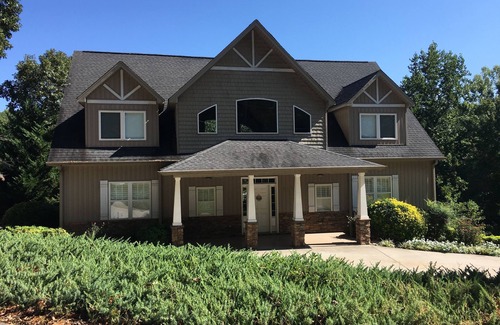 Waterfront home on Lake Keowee, 15 miles from Clemson Memorial Stadium! Great home for large groups coming in to spend time with family and friends on the lake, or for those coming in town for events at Clemson. House has 8 bedrooms, 4.5 bathrooms, 2 living room areas, 2 kitchens, a pool table that can be made into a ping pong table, spacious outdoor decks for gathering, gas grill, pleasant lily pad pond in the back yard, and a large driveway for parking multiple cars. Home is located at the back of a cove, so the water is very calm with no thru traffic of other boats to worry about. This home is new on the market for vacation rentals, so furniture and appliances are like new still! If you are looking for a large space to hold your next family reunion, a home to spend the weekend so you and your friends can attend the games going on at Clemson, or you just want a quiet get-a-way at the lake, then this home is for you!