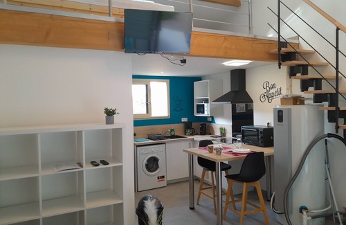 Come and relax in this bright, cosy, quiet and elegant new studio + mezzanine (2024) measuring 26m² on the ground floor, with a mezzanine sleeping area to free up the ground floor.