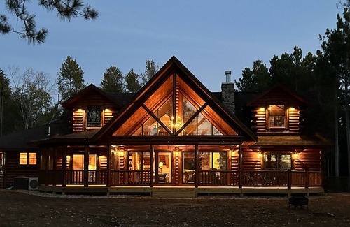 Lakefront log cabin living at its finest! Newly built lofted cabin with three bedrooms and three bathrooms can comfortably sleep 10 located on Wisconsin's 2nd-largest lake. Located minutes from Sand Valley and connected to walking path that is steps from the beach and less than a 10-minute stroll to terrific dining options.