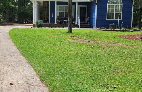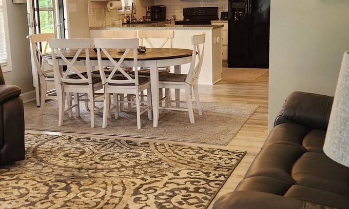 Forget your worries in this spacious and serene space in the Carolina Lakes. Enjoy your morning coffee on the patio overlooking the lake, then spend the day enjoying all the amenities Carolina Lakes has to offer; golf - fees apply, tennis, pickle ball, disc golf nature trail, or just lay out by the pool -seasonal . The bedrooms feature a nice mix of sleeping arrangements, including a king bed, full bed, queen beds, and 2 twin bed. With amenities like heating, a washing/dryer, WiFi, and AC, guests will feel right at home. exploring. We hope you'll enjoy your stay at our welcoming house.