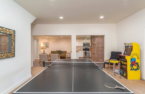 • Theatre Room with large sectional and futon (sleeps 2), Flatscreen TV, access to ¾ bath • Bath: ¾ with shower