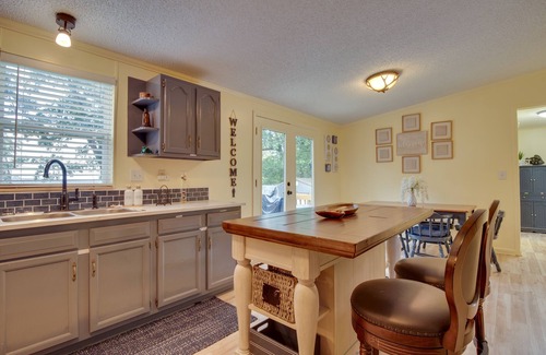 Unspoiled views of Norfork Lake and lots of space to enjoy the outdoors await you at this Mountain Home vacation rental. This colorful 4-bedroom, 2-bathroom home features a long sloping yard with a fire pit looking out over the water, a deck and patio space with an outdoor heater, and a marina less than a mile away! Spend the warmer months out on the lake or grilling up some dinner. When the weather turns cold, make s’mores under the stars or cozy up inside by the fireplace and stream a movie.