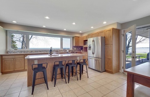With 180 feet of lakefront access and a large lawn, your family and friends can unwind and relax on this beautiful property. The DNR boat launch is just blocks away and you are welcome to use our dock to bring your boat during your stay! If you're here during the winter months the lake freezes over beautifully for snowmobiling or ice-fishing and there are ski venues and snowshoeing trails close by! The living area has a smart TV, sound bar and large sliding doors with a stunning view of the lake. The entire home has been recently renovated with updated finishings throughout. The kitchen has everything you need to get started including many small appliances like a Crock Pot, Keurig and drip coffee maker, toaster and blender. The bedrooms have full size closets in each one, as well as comfy beds to get some rest after a long day on the water. There is a washer and dryer available for you to use during your stay!