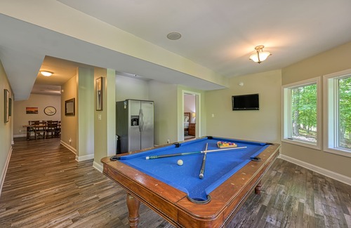 The lower level is the place to be for family game night! Enjoy a game of pool, play some board games, or grab a book to read. Step outside on the lower patio and relax with a soak in the hot tub. The third primary suite, a guest bedroom, and a guest bath complete the lower level.