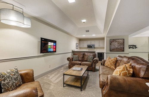 "Sweet Tea on the Dock" offers the ultimate getaway. Our 7,000 sf luxury lakefront home offers 6 private sleeping rooms with king/queen beds and multiple indoor and outdoor living areas to comfortably fit your entire group! It sits on 2 acres of beautiful landscaping and gives complete privacy while offering access to everything you need.Spend your days on the expansive deck or dock, swimming or boating, fishing, kayaking, and creating lifelong memories together. Kayaks, paddle board and more included for free. Located just minutes away from great restaurants, shopping, hiking and more, Sweet Tea has it all!