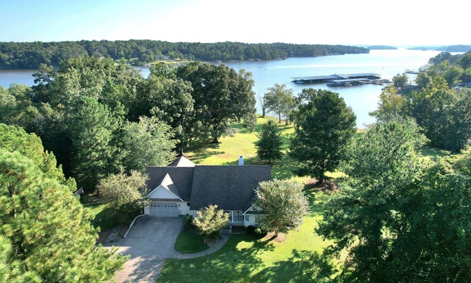 Beautiful Lake home . Amazing view all year long. With 3 queen beds spread across 3 bedrooms, this brilliant property offers all the comforts you need for a relaxing stay. Relax setting in the beautiful sunroom, back porch, cook out on the deck. Set by the fire close to the water and watching the moon reflection on the water is stunning. There is a easy walk to the dock watching boats in and out of Malcolm Creek Bay. Or put your boat in less than 2 miles at the Big Bear Hwy Public dock and park. Enjoy the convenience of a washing machine, heating, and AC, along with 2 and half bathrooms equipped with showers. Home is all one level, with a split floor plan. Light plush carpet in living and Bedrooms so if raining or snow we ask you to remove shoes before entering this area to prevent stains. A nice level yard with huge beautiful shade trees for privacy. Watch the sun rise, the sunsets are amazing reflecting off the water. We added a firepit area close to the lake with plenty of vintage outdoor seating. We look forward to hosting you at our place. Kayaks, golf cart is available upon request.