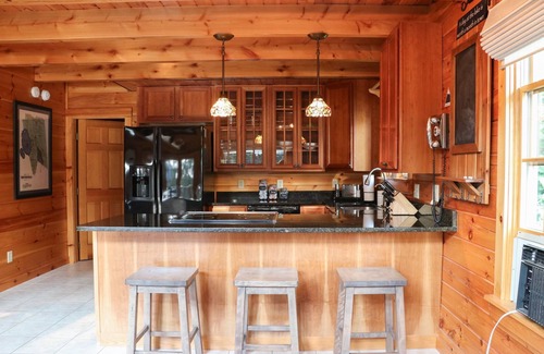 Our well appointed, year round, waterfront, three story log cabin has 3 bedrooms, 3 bathrooms & a bonus room with a beautiful view of the lake! It offers everything for families and friends, who want to create lasting memories, and enjoy a fabulous lakeside retreat and/or outdoor adventure! Luxury log cabin with comfortable beds, strong wifi, common area work space, fully stocked kitchen with open floor plan, washer/dryer & cozy oversized furniture to make you feel at home. Enjoy our private waterfront property with dock to fish, boat, waterski/tube, kayak, paddle board, swim & watch stunning sunsets! Venture out to nearby areas to hike, golf, cross country ski, snowshoe, ice fish, snowmobile & ski.