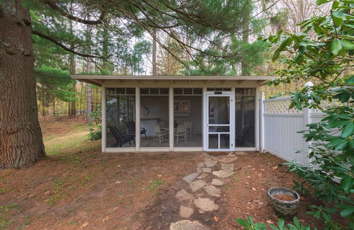 The perfect getaway for two. This studio style cottage is stocked with all the necessities for a lovely vacation. The large screened in porch is perfect for morning coffees listening to the birds or even the waves of Lake Michigan. Walk inside and be greeted with the open floor plan. A little kitchenette stocked with items for an easy dinner (microwave only, no stove), and there is a grill outside the cottage. Up one step is the queen size bed, a couch, and tv. What more could you need?