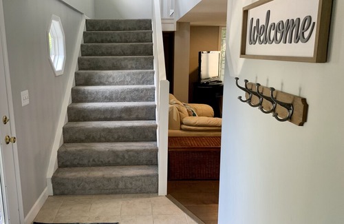 Soak in the sunrise with a panoramic view from the kitchen and enjoy the sunset by a bonfire on the patio in this newly remodeled cottage. Located on Sand Point's north shore, this house leaves you wanting for nothing with its private launch- perfect for canoes and kayaks. Spacious enough for the entire family with two bedrooms upstairs and three bedrooms downstairs with a second common area- perfect hangout for the kids! We’re excited to host you for a relaxing getaway.