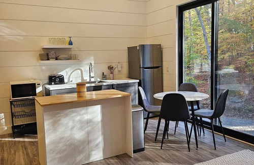 Indulge in pure relaxation in the 10-foot sauna, where you can unwind while enjoying serene panoramic views. Outside, gather around the campfire, take out the kayaks, paddle boards, relax on the dock or dive in for a refreshing swim in the lake.
