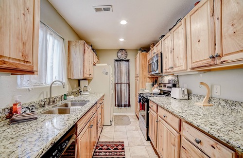 Inside, the sun-filled living room features soft seating, a fireplace, and a Smart TV. When you aren't dining out, head for the fully equipped kitchen with an electric stove, oven, microwave, and refrigerator.