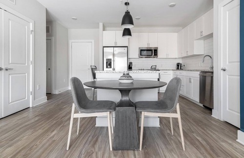 Chestnut Farm offers fully-furnished apartments perfect for flexible, monthly, or extended stays. Each home features a full kitchen with granite countertops, in-unit laundry, and thoughtful details that make settling in easy. Enjoy resort-style amenities like a pool with a sun shelf, 24-hour fitness center, yoga studio, and outdoor game court. Spend your downtime exploring nearby greenways, Colonel Francis Beatty Park, or the shops and restaurants of downtown Matthews.