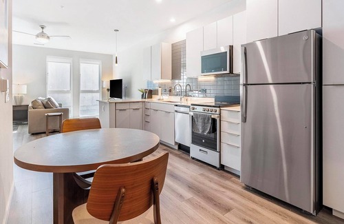 Stay steps from Midtown and just minutes from downtown. Emory at RED places you at the center of Reno’s most vibrant neighborhood. Ideal for short-term, monthly, or extended stays, our fully-furnished apartments feature full kitchens with quartz countertops, stylish furnishings, and in-unit laundry. Enjoy resort-style amenities including a heated pool and spa, outdoor movie screen, yoga studio, coworking lounge, pet spa, and a 24/7 indoor-outdoor fitness center.