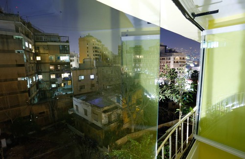 On the 4th floor of an elegantly round Art Deco building of the sixties located in a lively neighborhood, at a 10-minute walk from the trendy Badaro street, a space bathing in colored light traversing stained glass windows, belted with a garden holding up 12 meters above the ground: A vast living, including a kitchenette, and a flat screen TV. Two bedrooms, both giving on the suspended garden, with a enjoying view on the mountain: One with a queen size bed, plus a standard bed, the other with two standard beds. A bathroom with a bathtub. Free internet.