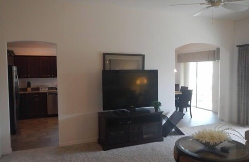 You'll feel welcomed and relaxed as soon you open the front door to your home away from home. This home is beautifully decorated and boasts a bright open floor plan. The kitchen is complete with everything you'll need to prepare and serve meals. The eat-in kitchen table seats 4 comfortably, you will also find a couple of barstools at the kitchen bar. The Dining room table seats 6 comfortably adding up to lots of seating for entertaining your new friends. The Living room offers plenty of comfortable seating if your entertaining friends or family or just enjoying your favorite television shows on the flat screen TV. The master bedroom has a comfortable king size bed, a TV for your enjoyment, large walk in closet, and a private master bath. The master bath offers a walk in shower and his & her sinks. The guest bedroom has a comfortable queen size bed for your over night guests and the 3rd bedroom is set up as a den with a desk for you to use. Don't forget to pack your Ipad or laptop computer to keep in touch with your friends and family back home. The bedrooms and both bathrooms are set up with extra towels and linens. And of course there's a charming screened in lanai with a table & chairs for you to enjoy reading the morning paper with your coffee or juice. It's also a great place to sit and relax at the end of a busy day of activities. You can fire up the new gas BBQ grill and invite your friends over for a great meal before heading off to Brownwood for your FREE nightly Entertainment.