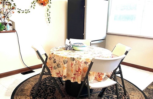 Extra parking space fits many cars and trucks. Laundry room with washer and dryer with detergent provided. Fully equipped kitchen with coffee machine and coffee, creamer and many other amenities . We provide clean towels and washing clothes. Shampoo, conditioner and body wash also provided.