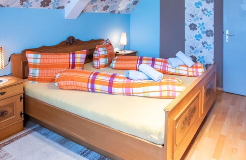 This property has been cleaned with chemicals that are effective against Coronavirus. Our staff is following all safety protocols as directed by the local authorities. Physical distancing rules apply for check in and check out. This spacious apartment is located in the attic of a well-maintained house in the health resort Lauterbach at 800m altitude, at the eastern end of the central Black Forest. The comfortably furnished flat has a large, well-equipped kitchen. The shared garden invites you to relax. Here you will find peace and relaxation in a wonderful natural setting. Interesting adventure trails as well as numerous long-distance tours lead through a diverse landscape such as tranquil mountain valleys or colourful mixed forests. Many of the bike paths are suited for both families and those who love a challenge while exploring the surroundings on two wheels. In the winter months, extensive cross-country skiing trails, sledging slopes and ski runs promise a lot fun in the snow. Excursion destinations: Freudenstadt, Rottweil, Triberg Waterfalls, exihibition mine in Haslach, Hohenschramberg castle ruins, the summer toboggan run 'Gutach-Schwarzwaldbob'. Please note that most countries and/or areas have COVID-19 measures in place. We advise you to take this into account when booking your holiday home since a change in restrictions may not be a valid reason to cancel the booking free of charge. Layout: On the 2nd floor: (Entrance, Living room(TV(satellite), radio), Kitchen(dining table, electric kettle, toaster, cooker(4 ring stoves, ceramic, electric), coffee machine(filter), oven, fridge-freezer), bedroom(double bed), bedroom(double bed), bedroom(double bed), bathroom(bath tub, shower, washbasin, toilet), Landing) heating(central), garden(shared with other guests), garden furniture, BBQ(charcoal), 6x parking, deckchairs, bicycles available(paid), Sunscreen These costs are mandatory and charged on site. They are not included in the rental price.: Final Cleaning; € 30 Pets; Max. 1; € 5/night Bed linen; Present Optional services that you can arrange on site: Bath towels; Present Kitchen linen; Present Wifi; Free