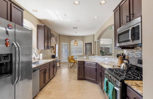 This is a MASSIVE, beautifully decorated house that will be your home away from home. This Texas-sized house truly offers everything you might need or want on your vacation. Your hosts, Kyle and Laura, are travel enthusiasts, and have considered every traveler's need, including those traveling with children, dogs, or elderly companions. Bedrooms are large and feature luxury hotel quality linens. We are truly passionate about entertaining and hosting. We are not a property company that has "flipped" this home, or that owns and rents dozens of properties. This is our home. We carefully curated an experience for anyone traveling with a large group, whether it be friends, or family. If you enjoy cooking and entertaining at home while traveling, this is your place. If you love going out and seeing the sights, this is also a great option. The home is a short fifteen minute car ride from anything you might want to see in Austin, but is also in a neighborhood that is quiet and relaxing.