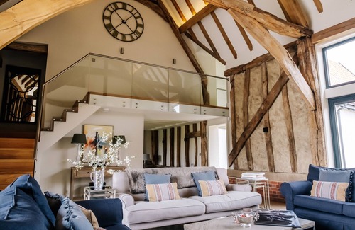 An ultra stylish luxurious barn with 6 ensuite bedrooms. Huge open plan living area with a luxury kitchen dining area. Fabulous landscaped gardens.