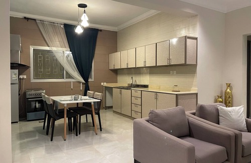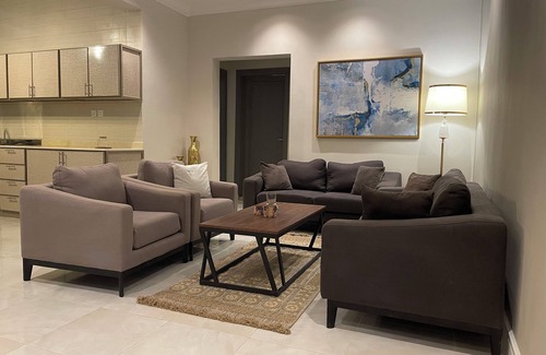 Nestled in the vibrant heart of Riyadh, this cozy two-bedroom apartments offer the perfect blend of comfort and convenience for your family or group. Just a 10-minute drive from Olaya, Kingdom Centre and Faisaliah Tower, and an excellent choice if you're visiting for treatment at the nearby hospital.