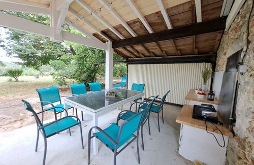 Stone house completely renovated with taste, bright and very quiet. Beautiful oak beams, fireplace with insert. Private park with panoramic views of the vineyards and the forest. Bowling ground.