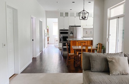 Although the home is in a neighborhood, the beautifully landscaped and treed backyard provides ample privacy from neighbors and golfers. Enjoy seasonal raspberries, apples, cherries + plums from our fruit trees while you spend some time outside. Our home is perfect for families, small groups or someone working remote!