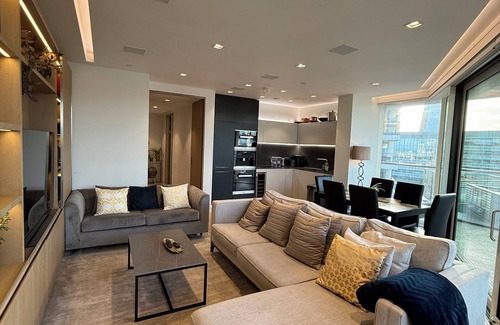 Large Luxury Penthouse Sleeps 8 with 1 comfortable sofa bed in the living room. 3 Bedrooms 3 bathrooms. Simply stunning views the best in London. Large wrap around terrace. Fully equipped kitchen and all things needed for a comfortable stay in Central London.