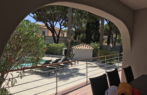 Large spacious well maintained ,high standard private 4 bedroom villa private pool and lovely mature garden situated in a cul de sac away from main roads.Within 800m from world famous beaches, close to Quinta do Lago and Vale do Lobo and all the amenities offered by these 5 star resorts...3 Bedrooms and two bathrooms on the ground floor, master bedroom with dressing area and ensuit situated entire top floor.Several terraces offering wonderful views of pine forest and ocean.