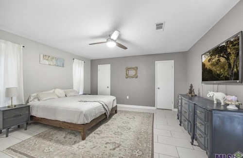 Your family and friends will be close to everything when you stay at this centrally-located place. 12 miles from LSU. 2 minutes from interstate. Target shopping center and new restaurants. 5min from Community park/dog park. 15 min from Perkins Rowe and Mall of Louisiana. 10min from Juban Crossing. 3 movie theaters within 10 min. Lots of spacious room. 5 bedrooms all with SmartTv/Firestick. Large office with couch and area for air mattress. Children's toys/games. Large living room with a sectional lounging couch. 2.5 baths with his and her sinks. Home is fully stocked with all you will need to make your stay as comfortable as possible. Extra Parking in rear. Privacy fenced large back yard with outdoor lighting, bbq pit, heater and seating. Attached carport for covered parking.