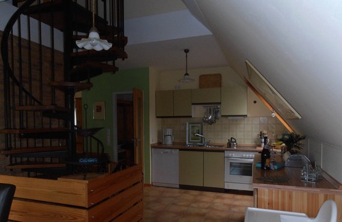 The approximately 100 square meter, lovingly furnished house offers space for 6 people. Is located under the pitched roof