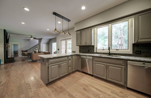 "Whitty Fox" is a large, recently renovated home away from home, perfectly suited for a group golf trip or family getaway. This beautifully appointed home, set in a peaceful part of Pinehurst, is just 1.3 miles from Pinehurst Village and has both fine dining and a breakfast/lunch restaurant within walking distance. Eight people have their own beds in this home that can sleep up to 14, and each of the 4 large bedrooms has an en suite bathroom. There is also a bonus room with a desk and a large day bed with a trundle, perfect for quiet/workspace and/or additional sleeping accommodations. Two king bedrooms are on the main level and upstairs you'll find the bonus/trundle room along with two large bedrooms, each of which has 2 queen beds. All of the bedrooms have smart TVs with the most popular apps and a subscription to Hulu Live TV.
