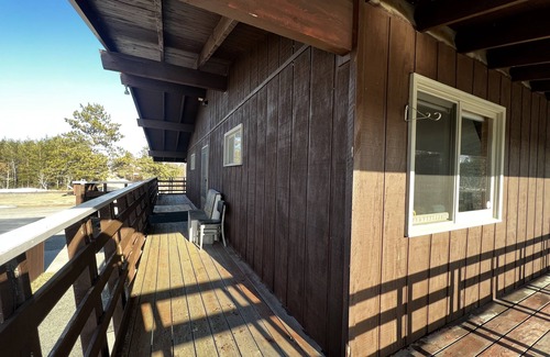 This is Suite 1. We have 2 available. This Suite has 1 queen bed and a full size bed in the main bedroom with a huge walk in closet, and a walk through bathroom with a jetted tub and a shower. The 2nd Bedroom has 2 Full size Murphy beds that can sleep 2 average sized adults and a private bathroom with a shower and a walk in closet. The Kitchen is Full size with all major appliances, toaster, coffee maker and basic kitchen cooking equipment. The living room has a fireplace (disconnected in summer months) and oversized couch, loveseat and double arm chair. The dining/living room area is open and has a patio door that leads to the wrap around deck with an outdoor seating/viewing area. There is also a roll top desk work space for working visitors and wifi is available. Our suites are located on the 2nd floor above the golf club house. Sandtrap Golf Course is an operational business and we do have delivery trucks bringing us supplies, golf carts in motion, and our guests and members going out and about throughout the day. This location is not secluded, so please do expect to hear some noises throughout the day and evening.