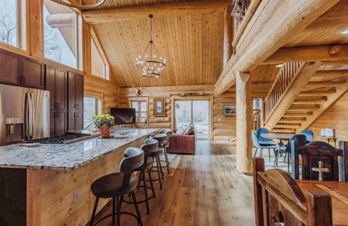 Imagine sitting on the deck of this gorgeous log home enjoying the sounds of the majestic San Juan River, surrounded by mature pine trees. Grazing deer, leaping trout and chirping squirrels are only a few of the local residents in this Riverfront community. Home has 3 bedrooms and 2 bathrooms and sleeps 6. Additional Garage Apt has 2 bedrooms and 1 bathroom and sleeps 5. Apt is included in the price. You can fish from your backyard & located on the way to Wolf Creek ski resort or Treasure Falls. Only 20 minutes to Tacos and Beer at Riff Raff on the Rio in the quaint town of Pagosa Springs. COME STAY WITH US!