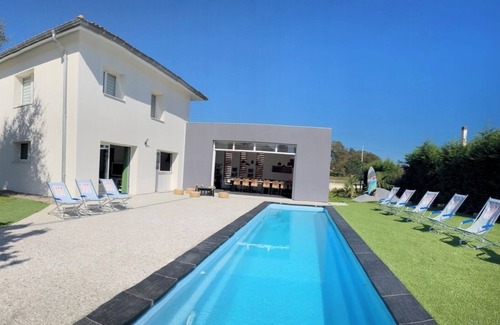 Lavilla2laplage:shops, beach on foot, 7 bedrooms, living/dining room 95 m2 is located in Tarnos. Lavilla2laplage:shops, beach on foot, 7 bedrooms, living/dining room 95 m2 provides accommodation, featuring Pool, TV, Accessibility, among other amenities. This Villa features Pool, TV, Accessibility, to make your stay a comfortable one.