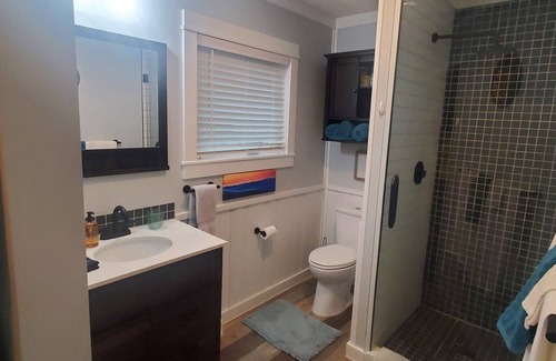 Lovely updated modern 480 SF stand alone cottage, fully equipped, fire pit, Grill, linens, work desk, front deck, private parking, fully fenced backyard, everything!! Very quiet neighborhood.