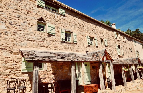 Les Coumayres consists of four unique, rustic, newly renovated gites. Le Chene is at the front of the house next to one more gite and the owners home. Behind the house are two larger gites, each with their own private terraces. We also have a Glamping site with two unique domes, located a couple of minutes walk from the house. Relax by the heated pool whilst the children splash around, play ping pong or have fun in the adventure playground. There is plenty of space for everyone with many terraces, including a unique tree platform where you can realx and read a book or enjoy the views. The gite has rustic charm and with the thick stone walls you'll keep cool in summer or cosy and warm in winter using the electric heaters or the wood log burner. There are two bedrooms; one with a double bed and the other with two single beds. You can buy some lovely local food from the open air markets and cook on the gas hob in the kitchen or outside on the communal stone BBQ. After unwinding and recharging at Les Coumayres you can hike down Les Milles Marches at Lac de Vezole, kayak on the river Orb, canyon in the beautiful rugged gorges, mountain bike or zip line. There's so many things to do for people who love nature and the wild countryside.