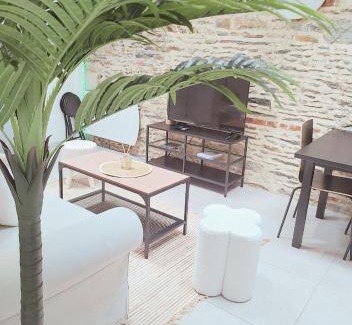 Le Cocon Palmier offers accommodations in Vitré, 25 miles from Gares Metro Station, Rennes and 25 miles from Les Champs Libres. This recently renovated apartment is located 24 miles from Le Blosne Metro Station and 24 miles from Triangle Metro Station. Free Wifi is available throughout the property and La Poterie Metro Station, Rennes is 23 miles away. This apartment includes 1 bedroom, a living room and a flat-screen TV, an equipped kitchen with a dining area, and 1 bathroom with a shower and a washing machine. Towels and bed linen are offered in the apartment. This apartment is non-smoking and soundproof. Charles de Gaulle Metro Station is 25 miles from the apartment, while Henri Fréville Metro Station is 25 miles from the property. Rennes–Saint-Jacques Airport is 28 miles away.