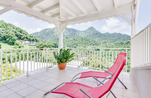 - Second terrace of 28 m² with garden furniture and deckchairs to enjoy the magnificent view of the Morne Vert peaks.
