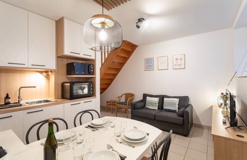 Cocoonr agency offers this charming 40 m² duplex flat with Wi-Fi, which can accommodate up to 4 people, is available to rent in Lamballe-Armor. It comprises a living room with fitted kitchen, 2 bedrooms upstairs and a bathroom. Cleaning is included in the rental price and 4-star hotel-quality linen is provided (sheets, towels, tea towels). Your bed will be made up on arrival.