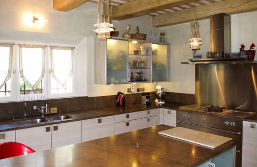 "Le Mas de la Roche", 4-room house 180 m2. Tasteful and stylish furnishings: living/dining room with open-hearth fireplace, dining table, satellite TV and DVD. Exit to the terrace. 1 room with 1 french bed (160 cm), shower/WC and air conditioning. Exit to the terrace. 1 double bedroom with shower and air conditioning. 1 room with 1 french bed (160 cm), shower and air conditioning. Exit to the terrace. Open kitchen (oven, dishwasher, 3 gas rings, toaster, kettle, microwave, freezer, electric coffee machine). Exit to the terrace. 2 sep. WC's. Underfloor heating. 2 terraces partly covered. Terrace furniture, electric barbecue, deck chairs. Panoramic view. Facilities: washing machine, dryer, iron, children's high chair, baby cot. Internet (WiFi, free).