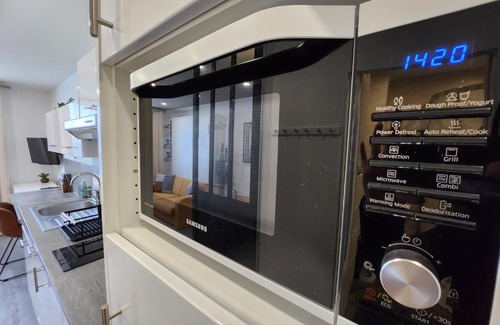 Food & DrinkTea/Coffee maker, Bottle of waterBathroomShower, Hairdryer, Toilet, Private Bathroom, Bathtub or shower, Towels, Toilet paper, Shampoo, Body soapMedia & TechnologyTV, Flat-screen TV, Streaming service (like Netflix)GeneralIron, Ironing facilities, Heating, Hardwood or parquet floors, Trash cans, Smoke AlarmKitchenRefrigerator, Microwave, Dishwasher, Kitchen, Electric kettle, Kitchenware, Oven, Stovetop, Toaster, Cleaning products, Coffee machine, Dining table, Wine glassesLiving AreaDesk, Sitting area, Sofa, Dining areaViewView, Ocean view, Garden viewBedroomWardrobe or closet, LinensBuilding CharacteristicsPrivate apartment in buildingRoom AmenitiesSocket near the bedAccessibilityAccessible by elevator |