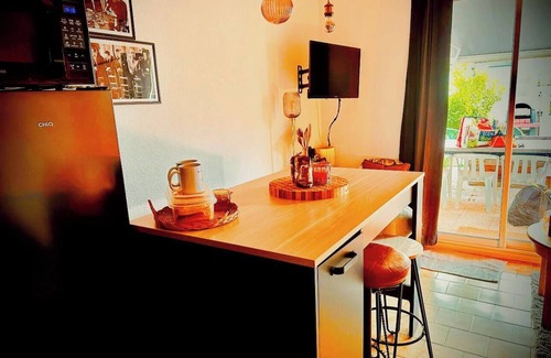 La résidence Le SUNSET, tout confort et très bien située. Plage, commerces, piste cyclable, arrêt bus a proximité, Sète a 10 km, le Cap d'Agde et Marseillan village a 5 km Vélos gratuits a disposition Jolie petite villa 35 m2 avec jardin de 25m2 et d’une place de parking privative sécurisée, climatisée et wifi gratuit dans tout l'hébergement Disposant d’un salon d’extérieur, d’une table pour vos repas, d’un store banne électrique, d’un BBq et de vélos pour vos courses de proximités ou vos promenades Le logement de 35m2 style industriel et vintage, climatisé dispose d’un coin salon cosy avec canapé convertible en 140X190, d’une table basse pour prendre un apéro devant la smart tv connectée, Netflix et prime vidéo. Chaine OCS La cuisine est équipée et fonctionnelle avec, bouilloire, machine expresso, grille pains, four combiné, frigo et congélateur a tiroirs plaque induction, presse agrumes etc La salle de douche moderne avec douche a l’italienne et son grand miroir. Petit Wc séparés Une première petite chambre cabine avec 2 lits superposés et porte a galandage pour votre intimité. A l’étage une chambre avec velux, rangements et lit en 140x190, 1 lit parapluie, chaleureuse, spacieuse et ensoleillée. Toutou bienvenu, panier, gamelles et jouets à dispositions. Autres services sur demandes Stéphanie votre hôte