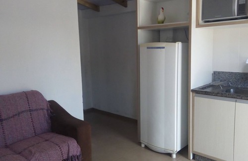 The net kit house for two people has a bedroom, living room and kitchen, bathroom. The property has air conditioning, microwave, refrigerator, stove, blender, crockery, wifi, sofa, television. In the courtyard of the property there is a barbecue available to guests. It is located in the very safe neighborhood / street; 1700 meters from Bombas beach, 2100 meters from Centro beach. The environment is simple, peaceful and safe.