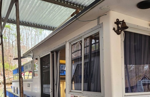 A little houseboat in a quiet Cove this is for Sitting having your favorite coffee or beverage of choice… Reading a book ..She is not for swimming or boating… Only a quiet place to relax. .there is a electric skillet for cooking. Inside or out. She has air conditioning as well as heat. If you like water you will enjoy my boat as a clean place to spend the night and be in nature. There are turtles and ducks all around. It’s very peaceful there….