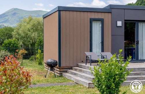 Come and stay in one of these six premium lodgings close to Lake Chambon. These new, latest generation cottages respond to a more architectural vision of the mobile home. The materials, used inside and out, display great sobriety, while being contemporary and sophisticated. Ideally located, you can enjoy Lake Chambon but also the many surrounding activities: hiking in the Chaudefour valley, skiing in Super Besse, discovering the gastronomic heritage in Saint-Nectaire ... With a total area of 35m² + 18m² of terrace, you will be amazed by the ergonomic layout which allows you to have space. You will find a living room with fully equipped kitchen, living room and dining table. 1 bedroom with 1 bed 160x200 and 1 bedroom with 2 beds 80x190. Each of the bedrooms has a bathroom and a toilet. Outside you will have the pleasure of spending good times on the terrace with its deckchairs, its garden furniture and its barbecue or on the pétanque ground shared by the 6 cottages. The maximum capacity is 4 people, no additional baby possibility if 4 people. No washing machine and no possibility of renting linen. Are provided: draw sheets, pillowcases and duvets (duvet covers not provided, to be provided). Shops and services are in Chambon-sur-Lac and Murol just 2 km away. Cheese dairy (products from Auvergne and bread depot), restaurant, pizzeria, tobacco newspapers in the immediate vicinity.